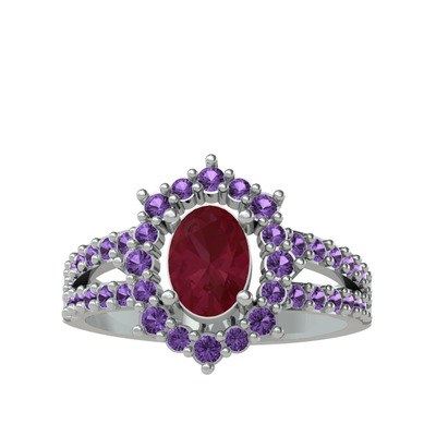 Kök yakut ve ametist 8 ayar beyaz altın yüzük