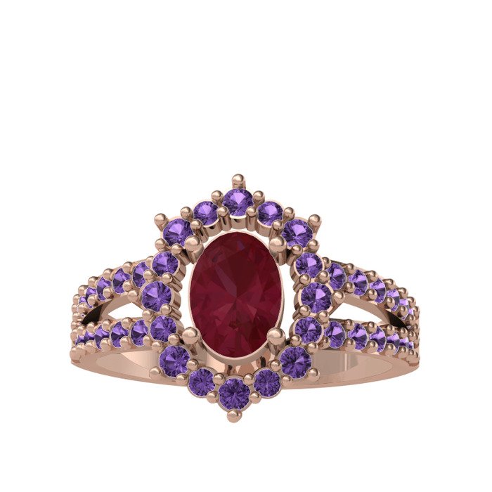 Kök yakut ve ametist 925 ayar rose altın kaplama gümüş yüzük