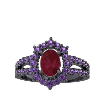 Kök yakut ve ametist 925 ayar siyah rodyum kaplama gümüş yüzük