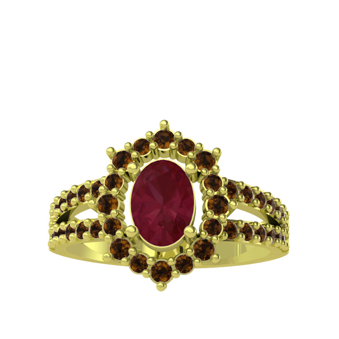 Kök yakut ve dumanlı kuvars 925 ayar altın kaplama gümüş yüzük