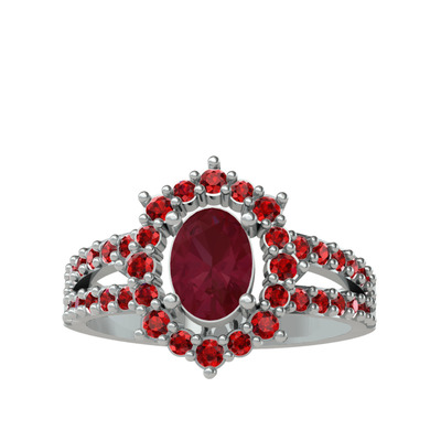 Kök yakut ve garnet 8 ayar beyaz altın yüzük