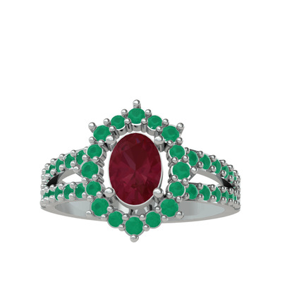 Kök yakut ve kök zümrüt 14 ayar beyaz altın yüzük
