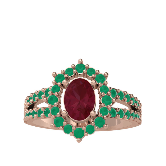 Kök yakut ve kök zümrüt 925 ayar rose altın kaplama gümüş yüzük