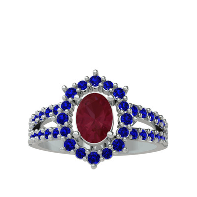 Kök yakut ve lab safir 8 ayar beyaz altın yüzük
