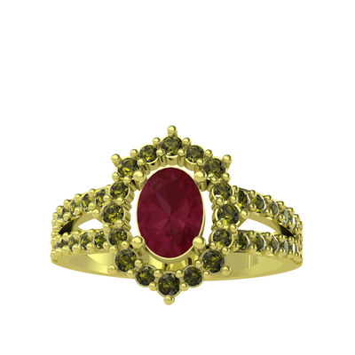 Kök yakut ve peridot 8 ayar altın yüzük