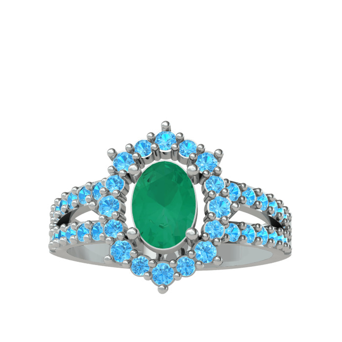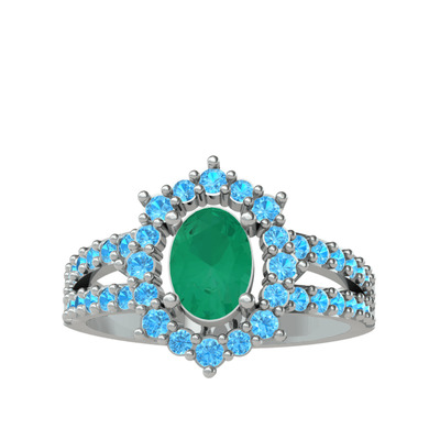 Kök zümrüt ve akuamarin 18 ayar beyaz altın yüzük