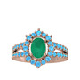 Kök zümrüt ve akuamarin 18 ayar rose altın yüzük
