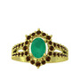 Kök zümrüt ve dumanlı kuvars 18 ayar altın yüzük