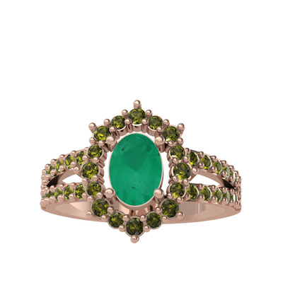 Kök zümrüt ve peridot 14 ayar rose altın yüzük