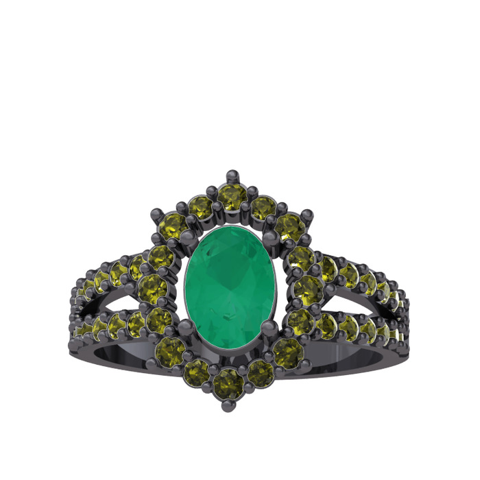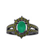 Kök zümrüt ve peridot 925 ayar siyah rodyum kaplama gümüş yüzük