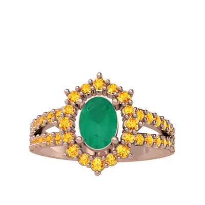 Kök zümrüt ve sitrin 925 ayar rose altın kaplama gümüş yüzük