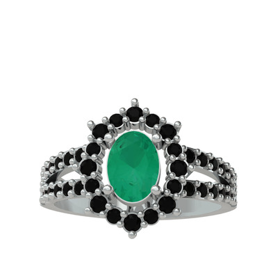 Kök zümrüt ve siyah zirkon 14 ayar beyaz altın yüzük