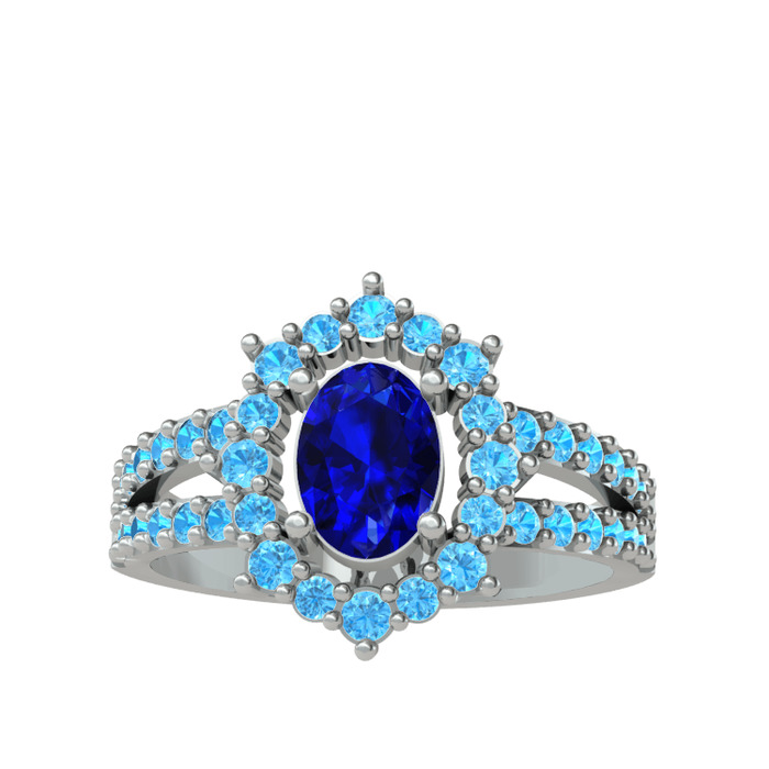 Lab safir ve akuamarin 925 ayar gümüş yüzük