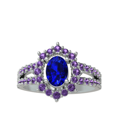 Lab safir ve ametist 14 ayar beyaz altın yüzük
