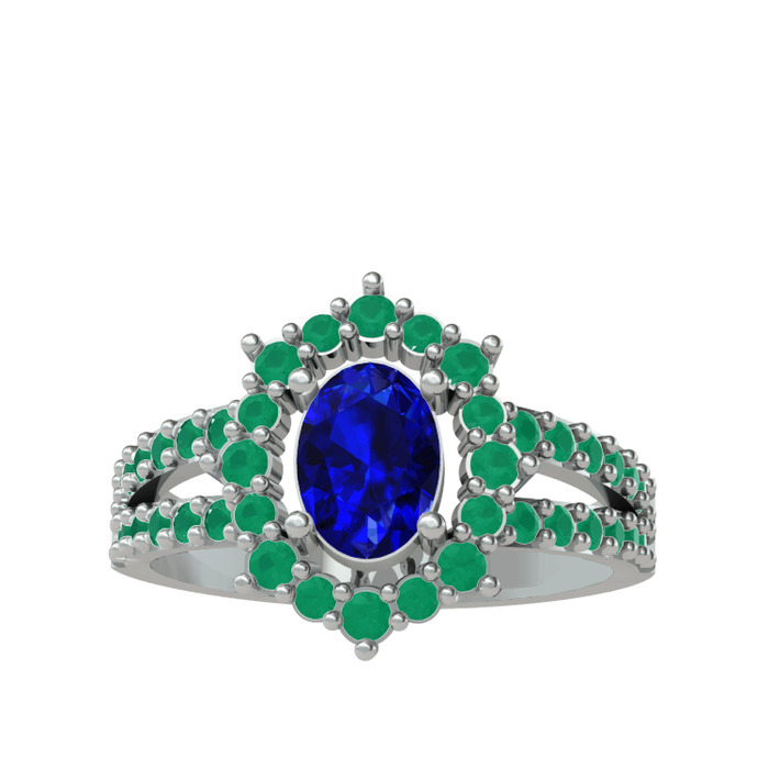 Lab safir ve kök zümrüt 14 ayar beyaz altın yüzük
