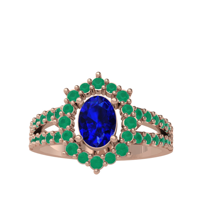 Lab safir ve kök zümrüt 14 ayar rose altın yüzük