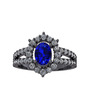 Lab safir ve pırlanta 925 ayar siyah rodyum kaplama gümüş yüzük (0.8 karat)