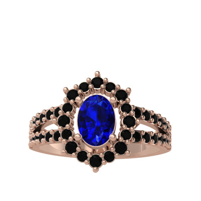 Lab safir ve siyah zirkon 14 ayar rose altın yüzük