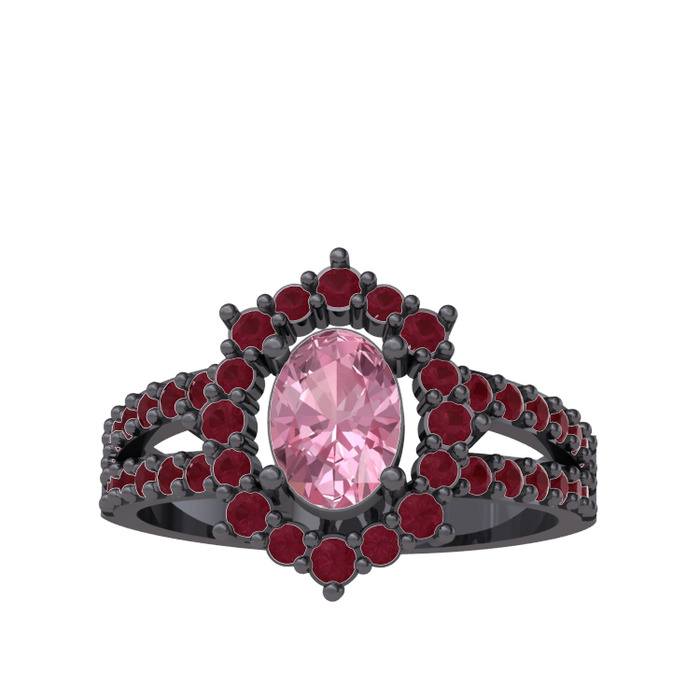 Pembe kuvars ve kök yakut 925 ayar siyah rodyum kaplama gümüş yüzük