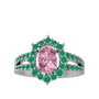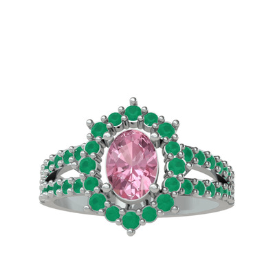 Pembe kuvars ve kök zümrüt 14 ayar beyaz altın yüzük