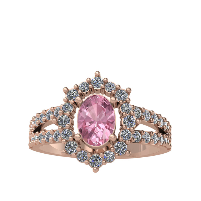 Pembe kuvars ve pırlanta 18 ayar rose altın yüzük (0.8 karat)