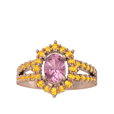 Pembe kuvars ve sitrin 8 ayar rose altın yüzük