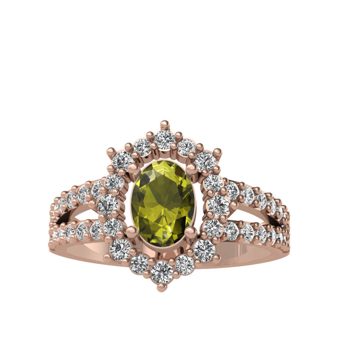 Peridot ve beyaz zirkon 18 ayar rose altın yüzük