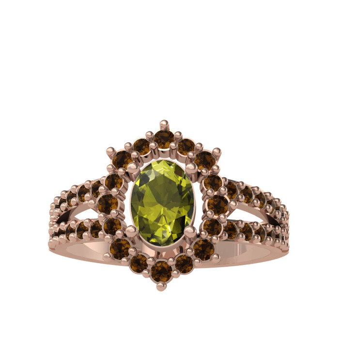 Peridot ve dumanlı kuvars 925 ayar rose altın kaplama gümüş yüzük