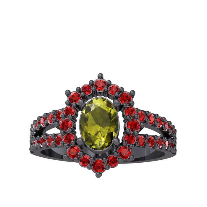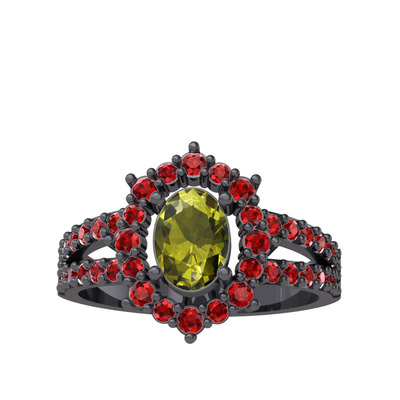 Peridot ve garnet 925 ayar siyah rodyum kaplama gümüş yüzük