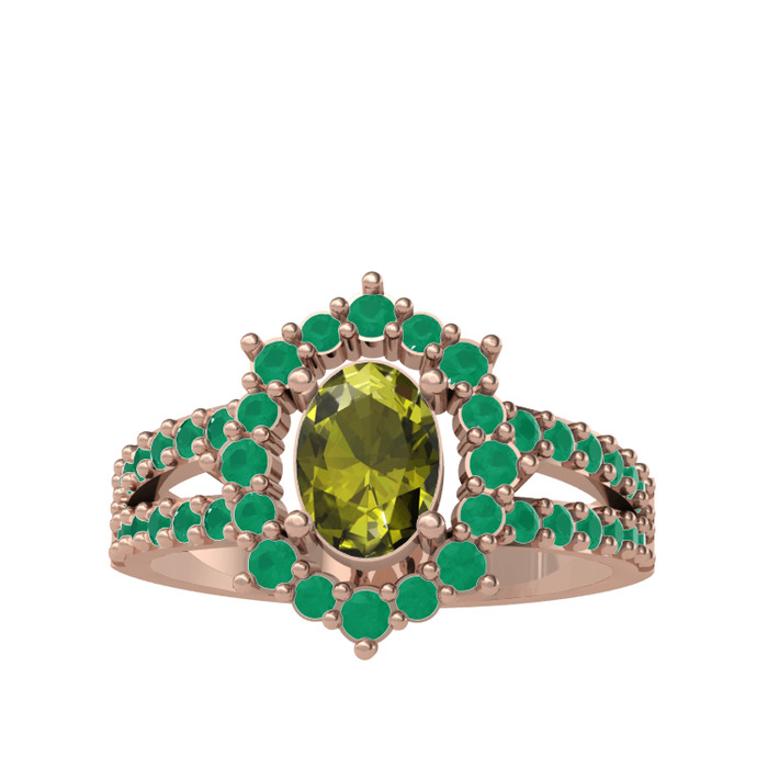 Peridot ve kök zümrüt 8 ayar rose altın yüzük