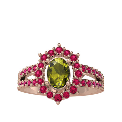 Peridot ve rodolit garnet 14 ayar rose altın yüzük