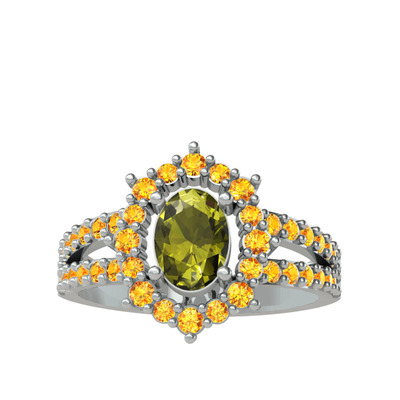 Peridot ve sitrin 18 ayar beyaz altın yüzük