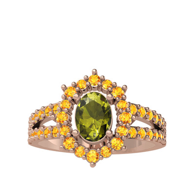Peridot ve sitrin 8 ayar rose altın yüzük