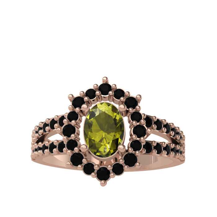 Peridot ve siyah zirkon 8 ayar rose altın yüzük