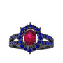 Rodolit garnet ve lab safir 925 ayar siyah rodyum kaplama gümüş yüzük