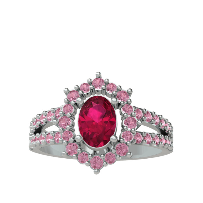 Rodolit garnet ve pembe kuvars 18 ayar beyaz altın yüzük