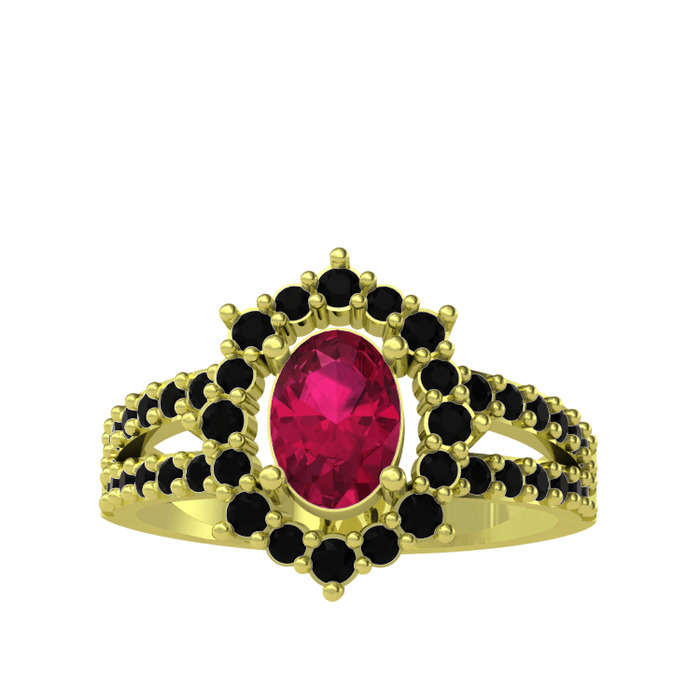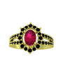 Rodolit garnet ve siyah zirkon 925 ayar altın kaplama gümüş yüzük