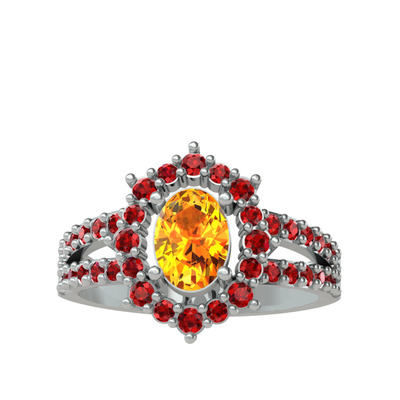 Sitrin ve garnet 14 ayar beyaz altın yüzük