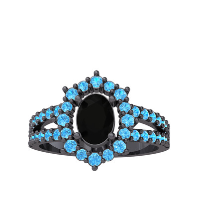 Siyah zirkon ve akuamarin 925 ayar siyah rodyum kaplama gümüş yüzük