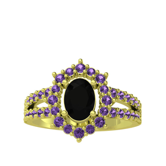Siyah zirkon ve ametist 14 ayar altın yüzük