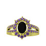 Siyah zirkon ve ametist 925 ayar altın kaplama gümüş yüzük