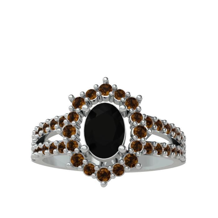 Siyah zirkon ve dumanlı kuvars 14 ayar beyaz altın yüzük