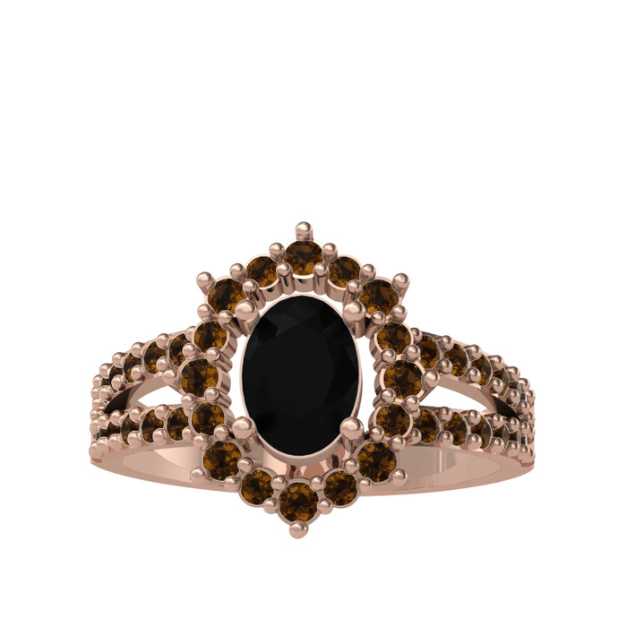 Siyah zirkon ve dumanlı kuvars 18 ayar rose altın yüzük