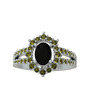 Siyah zirkon ve peridot 8 ayar beyaz altın yüzük