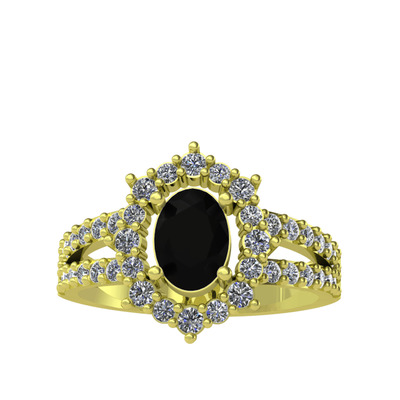 Siyah zirkon ve pırlanta 18 ayar altın yüzük (0.8 karat)