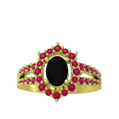Siyah zirkon ve rodolit garnet 8 ayar altın yüzük