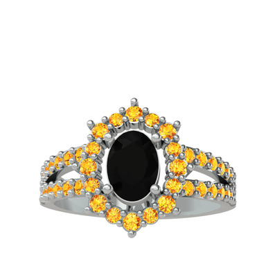 Siyah zirkon ve sitrin 8 ayar beyaz altın yüzük