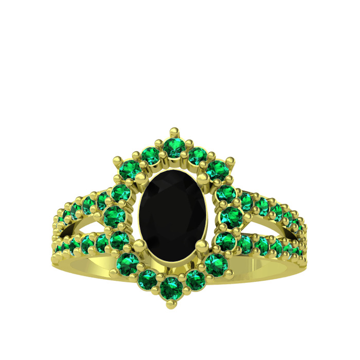 Siyah zirkon ve yeşil kuvars 14 ayar altın yüzük