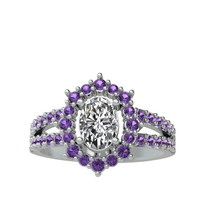 Swarovski ve ametist 14 ayar beyaz altın yüzük