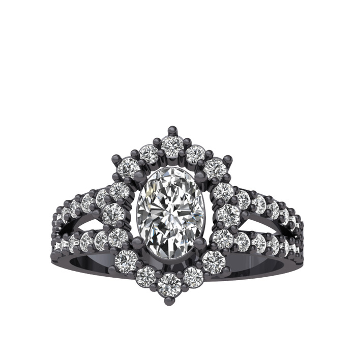 Swarovski ve beyaz zirkon 925 ayar siyah rodyum kaplama gümüş yüzük